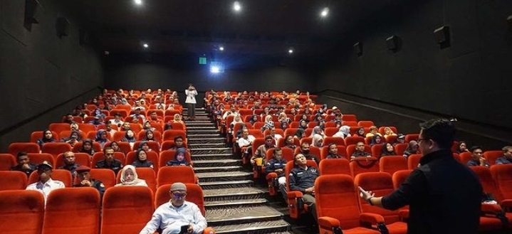 Prabumulih,Jagatrayanews.id-Nonton Bareng ini digelar oleh KPUD Kota Prabumulih Yang dikomandoi langsung Ketua KPUD Marjuansyah S.IP bersama Staff KPUD Kota Prabumulih,Nonton Bareng ini juga dihadiri Oleh OPD Pemerintah kota Prabumulih,Camat sekota Prabumulih,Polres dan Tni,Serta Berbagai Ormas sekota Prabumulih diantaranya Fatayat Nu,Pemuda Pancasila,dan Banyak lagi Ormas lainya yang Memadati Ruang Tonton Cinemax Citymall Kota Prabumulih