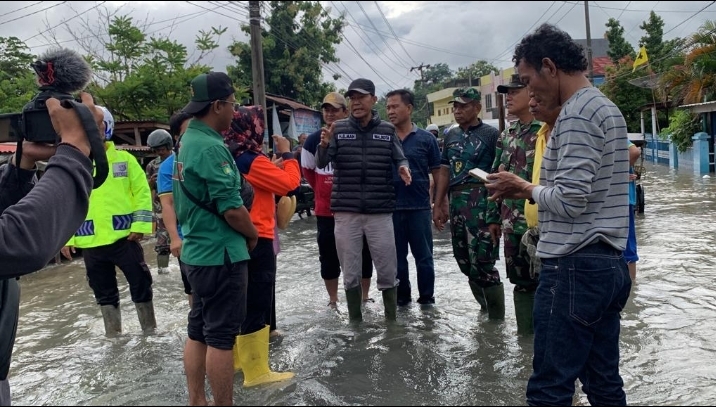 Penjabat Walikota Prabumulih H Elman ST MM meninjau langsung ke lokasi banjir, melihat dari dekat pemukiman yang tergenang serta dampaknya bagi kehidupan masyarakat.