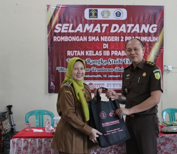 Kemudian kegiatan diisi dengan audiensi dan pemberian materi oleh bapak Zulkifli Bintang, A.Md.IP., S.Sos., M.Si selaku Kepala Rutan Rutan kelas II B Prabumulih serta kegiatan tanya jawab dengan peserta didik SMA Negeri 2 Prabumulih. Selanjutnya diisi dengan pemberian cindramata dari SMA Negeri 2 Prabumulih ke pada Rutan kelas II B Prabumulih yang diterima langsung oleh bapak Zulkifli Bintang, A.Md.IP., S.Sos., M.Si. serta kepada bapak Arliansyah S.H., M.H Selaku Kasi Pidum Kejari Prabumulih