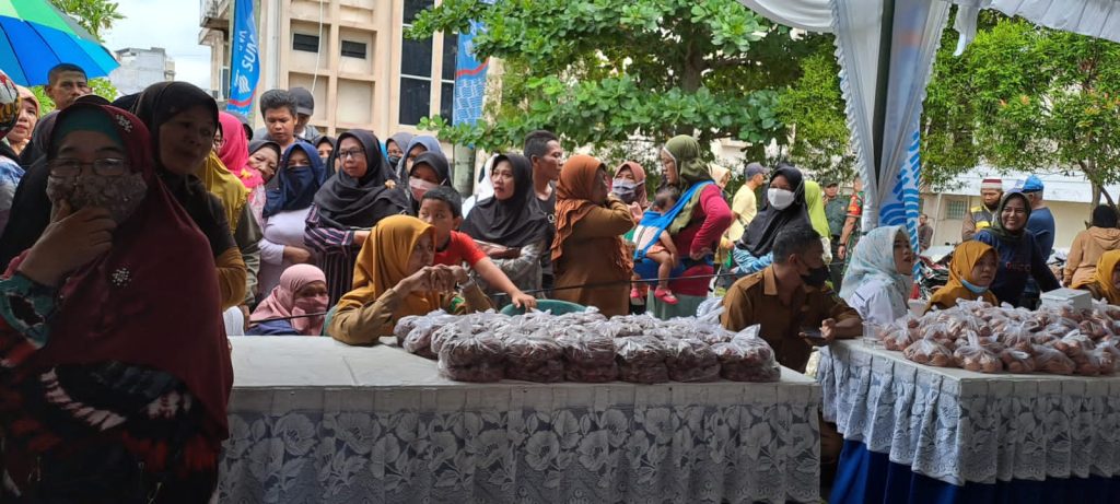 Ratusan Masyarakat Kota Prabumulih Serbu Operasi Pasar Murah yang digelar dilapangan Kantor Dinas Catatatan Sipil Kota Prabumulih Sumatera Selatan