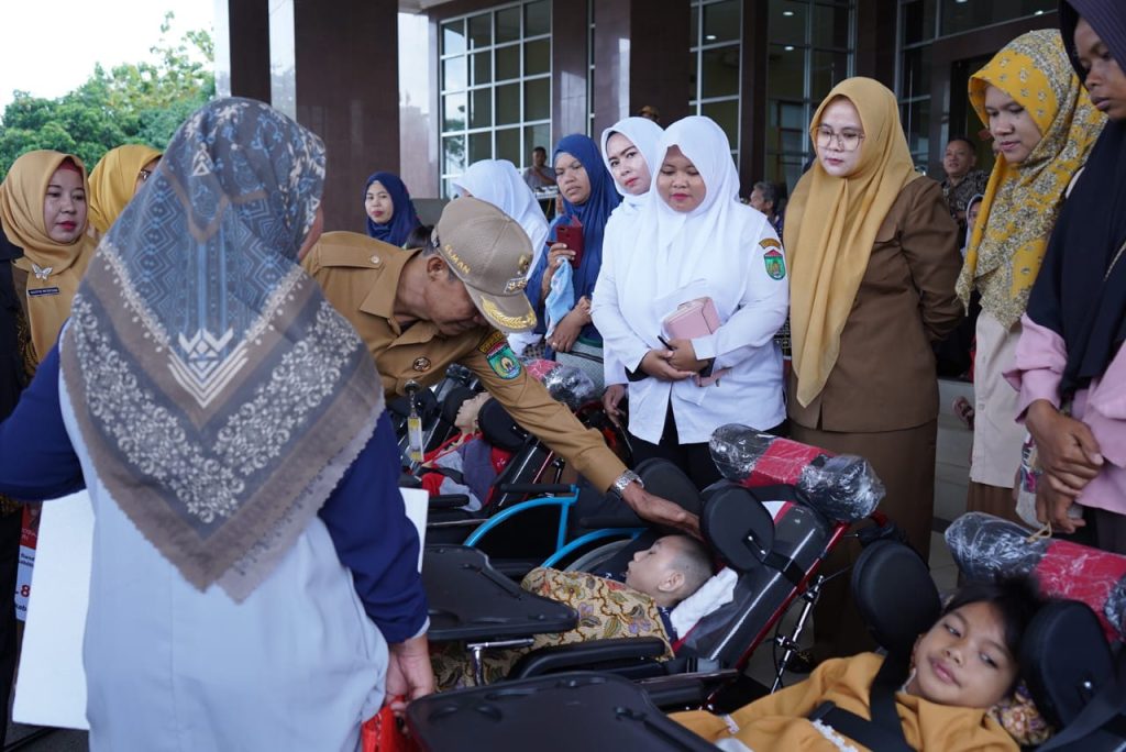 53 penyandang Disabilitas itu yakni 12 orang penerima kursi roda adaptif, 1 orang penerima kursi roda sport, 4 orang penerima bantuan usaha (warung sembako, warung makanan, usaha menjahit dan usaha konter) juga 48 orang penerima bantuan pemenuhan hidup layak (berupa sandang dan pangan).