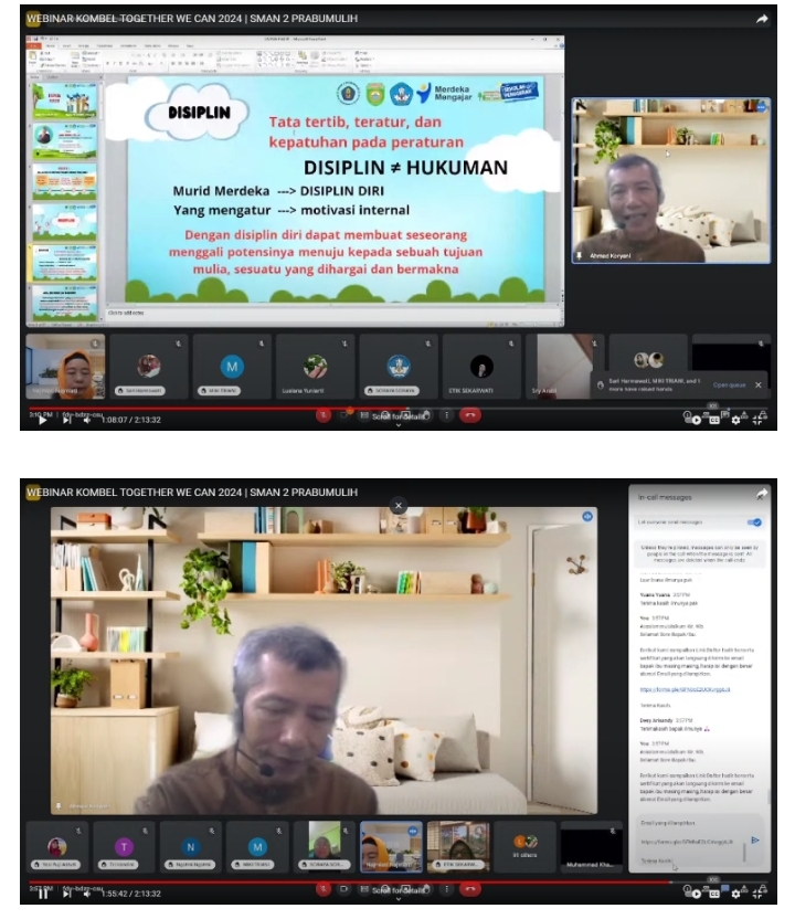 Prabumulih,Jagatrayanews.id-Sebagai satu-satunya sekolah penggerak di kota prabumulih dan salah satu sekolah yang memiliki guru PKP di kota Prabumulih, SMA Negeri 2 Prabumulih berinisiatif mengadakan webinar dengan jangkauan nasional dengan peserta dari berbagai daerah di Indonesia, yang berjudul “Kombel Together We Can” yang diadakan pada hari minggu tanggal 04 Februari 2024 pada pukul 14.00 s.d 16.00