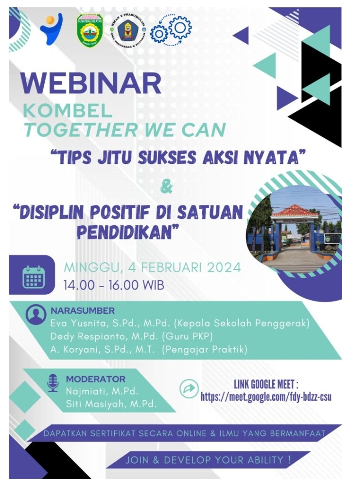 Prabumulih,Jagatrayanews.id-Sebagai satu-satunya sekolah penggerak di kota prabumulih dan salah satu sekolah yang memiliki guru PKP di kota Prabumulih, SMA Negeri 2 Prabumulih berinisiatif mengadakan webinar dengan jangkauan nasional dengan peserta dari berbagai daerah di Indonesia, yang berjudul “Kombel Together We Can” yang diadakan pada hari minggu tanggal 04 Februari 2024 pada pukul 14.00 s.d 16.00