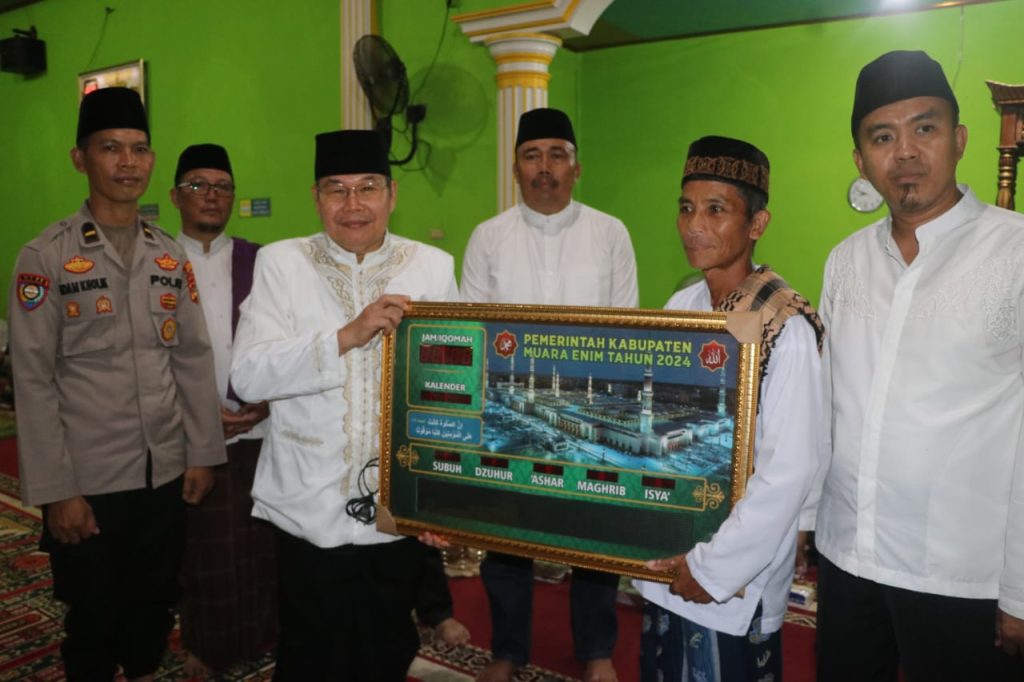 warga terkait pembangunan infrastruktur di Desa Ibul. Selanjutnya Asisten Pemerintahan dan Kesra juga menyerahkan bantuan kepada pengurus masjid yang didampingi Camat Belida Darat Zulchaidir Sidik, S.STP, M.Si., Kepala Desa Ibul, Mulyadi berupa jam digital dan alat elektronik pendukung kelengkapan masjid lainnya serta bantuan Baznas Kabupaten Muara Enim berupa paket bahan makanan pokok kepada warga prasejahtera Desa Ibul sebanyak 28 paket, serta dilanjutkan dengan Tausiyah yang disampaikan oleh Ust. H. Zulkarnain, S.Kom., M.Kom mengenai nilai-nilai keutamaan di dalam bulan Suci Ramadhan. (JGN-Med)
