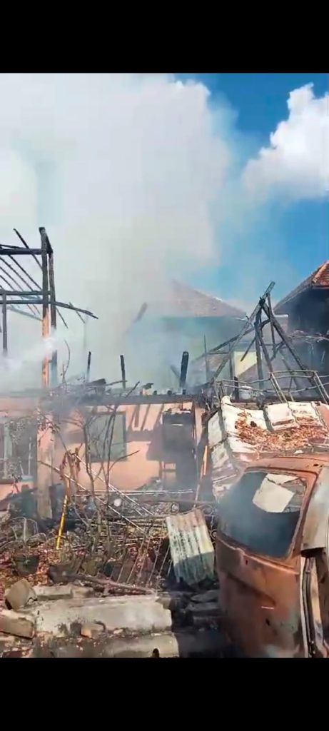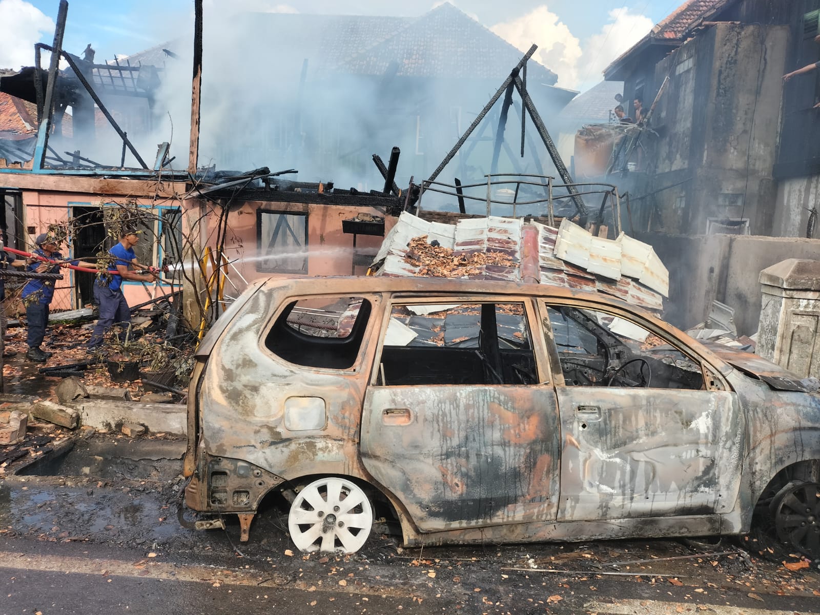 Saat tiba di TKP Mobil Oleng dan Menabrak Pomp Mini Milik Warga yang Berjualan Bahan Bakar Pertalite kejadian itu menimbulkan percikan api dan langsung Menyambar Pom Mini Milik Korban Bernama Robian 53 Tahun Desa Karang Agung Dusun 2,kejadian ini menyebabkan terjadi ledakan lalu mengakibatkan kebakaran hebat sehingga membakar Rumah korban beserta Mobil Avanza.