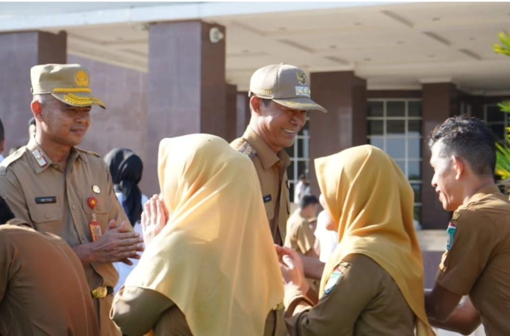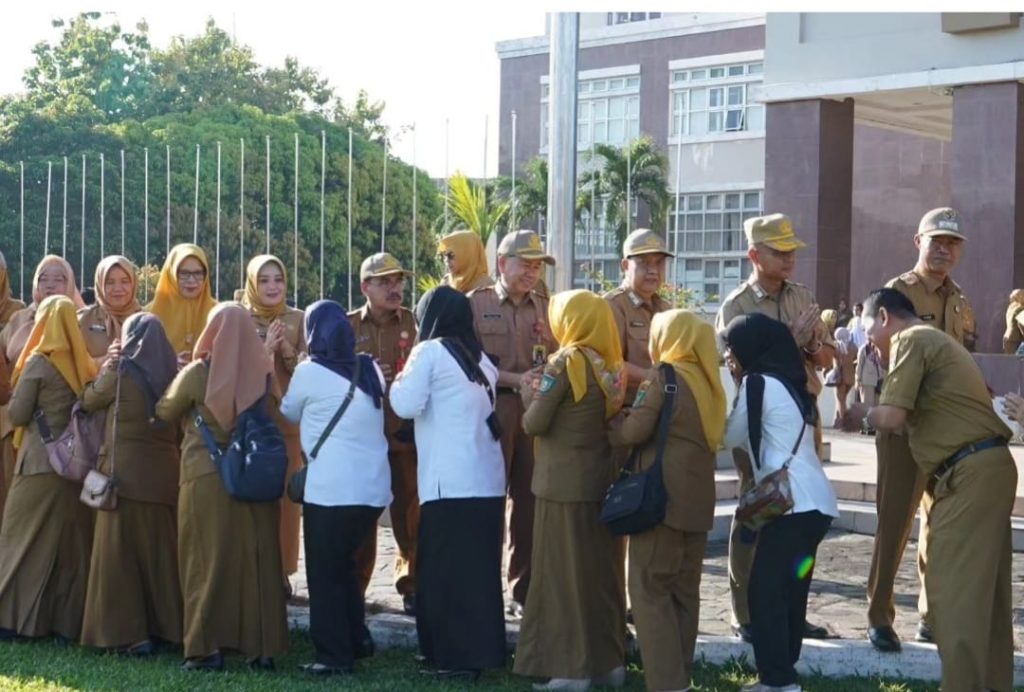 Penjabat Walikota Prabumulih H. Elman, ST, MM pimpin Apel Mingguan dan Halal Bihalal di Halaman Kantor Pemerintah Kota Prabumulih, Selasa (16/04/2024).