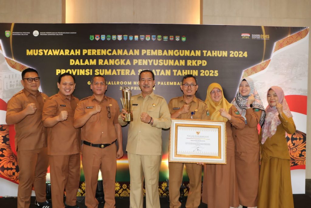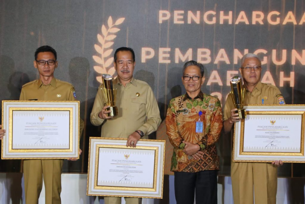 Penghargaan yang di dapat dari Gubernur Sumatera Selatan di serahkan langsung oleh Sekretaris Daerah Provinsi Sumsel, Ir. SA Supriono kepada Kepala Bappeda Muara Enim, Ir. H. Mat Kasrun, M.Si., di Hotel Novotel Palembang, Selasa (30/04/2024).
