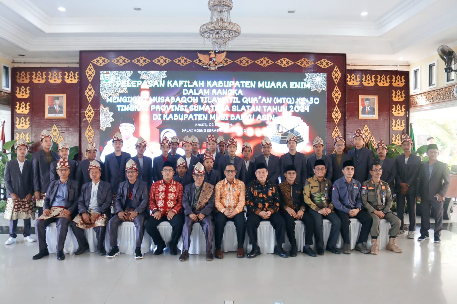 Jagatrayanews.id,Muaraenim-Sebanyak 70 orang peserta (kafilah) asal Kabupaten Muara Enim yang terdiri dari 50 peserta 10 pelatih dan 10 pendamping khusus tuna netra di berangkatkan untuk mengikuti ajang Musabaqah Tilawatil Quran (MTQ) ke-30 Provinsi Sumatera Selatan Tahun 2024 yang berlangsung di Kabupaten Musi Banyuasin.
