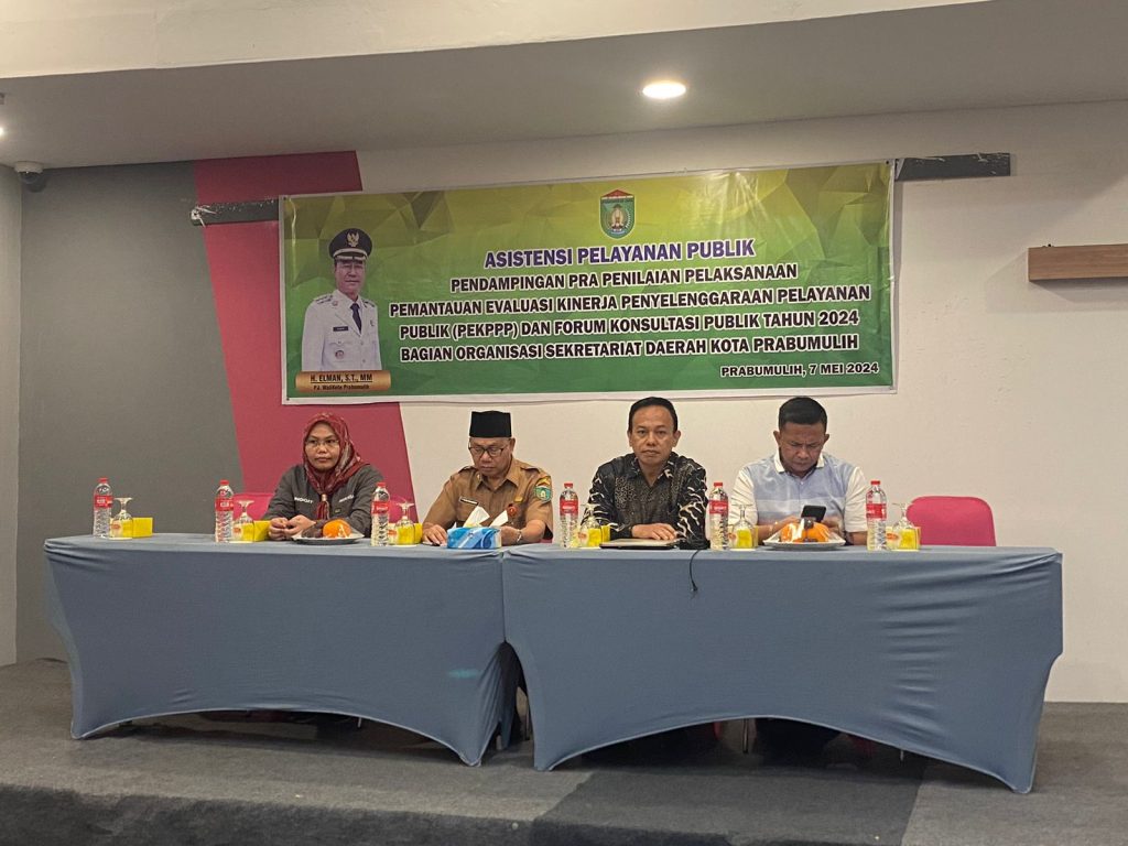 Kegiatan Pemantaun Evaluasi Kinerja Penyelenggaraan Pelayanan Publik (PEKPPP) dan Forum Konsultasi Publik Tahun 2024 resmi dibuka oleh Penjabat Walikota Prabumulih H. Elman, ST., MM yang diwakili oleh Asisten Administrasi Umum Drs. Amilton, Selasa (07/05/2024).