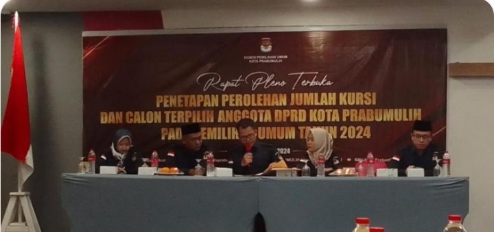 Prabumulih,Jagatrayanews.id – Dalam Rangka Tindaklanjuti surat Ketua Komisi Pemilihan Umum (KPU) Republik Indonesia Nomor 663/PL.01.9-SD/05/2024 Tanggal 30 April 2024 prihal penetapan Kursi dan Calon Terpilih anggota Dewan Perwakilan Rakyat Daerah (DPRD) Provinsi dan DPRD Kabupaten/Kota, KPU Kota Prabumulih menggelar rapat pleno terbuka penghitungan dan penetapan Perolehan Kursi serta penetapan Calon Terpilih anggota DPRD Kota Prabumulih dalam pemilihan umum (Pemilu) Tahun 2024.