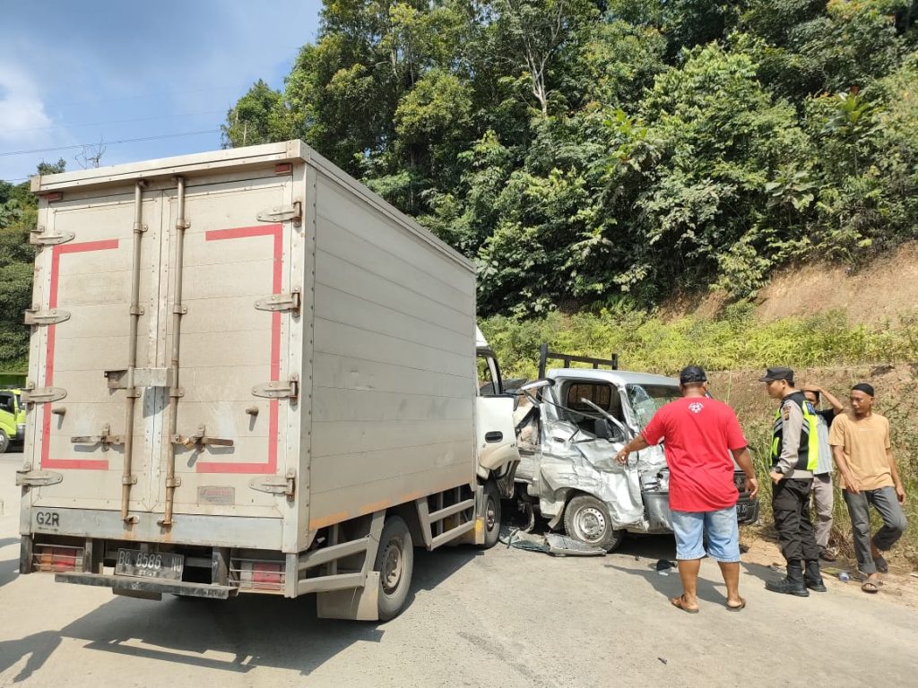 Diduga Ngantuk Mobil Isuzu Box Nopol BG 8586 NQ Arah Palembang Menabrak Mobil Carry Pick-Up dengan Nopol BG 8770 DS Arah Muara enim