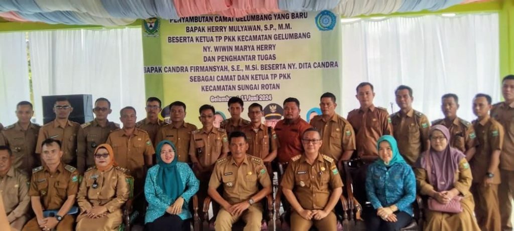 Berkenaan dengan hal itu Kecamatan Gelumbang menggelar acara penyambutan Camat Gelumbang yang baru yaitu Herry Mulyawan, S.P, M.M, beserta Ketua TP PKK Kecamatan Gelumbang Ny. Wiwin Marya Herry serta penghantar tugas Bapak Candra Firmansyah, S.E, M.Si beserta Ny. Dita Candra sebagai Ketua TP PKK Kecamatan Sungai Rotan.