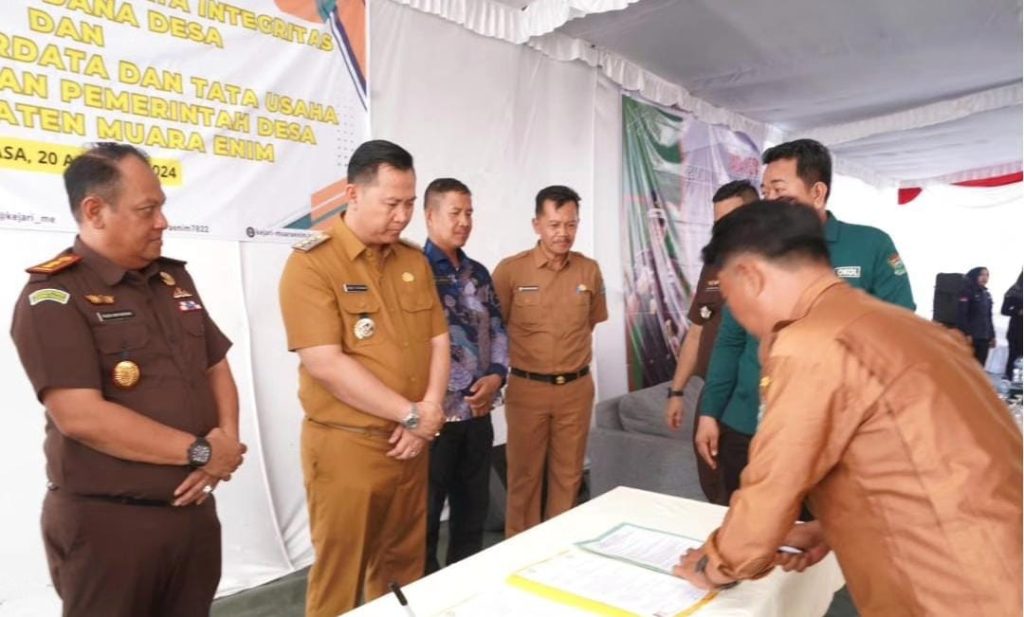 Jagatrayanews.id,Muaraenim-Sebagai wujud komitmen Pemerintah Kabupaten Muara Enim dalam memerangi Korupsi, Kolusi dan Nepotisme (KKN) di pemerintahan tingkat desa, Pj. Bupati Muara Enim H. Henky Putrawan, S.Pt., M.Si., M.M bersama Kepala Kejaksaan Negeri Kab. Muara Enim Rudi Iskandar, S.H., M.H., menyaksikan Pembacaan Ikrar dan penandatanganan fakta Integritas Anti Korupsi yang diikuti 245 kepala desa se-Kabupaten Muara Enim di Halaman Kantor Kejaksaan Negeri Muara Enim, Selasa (20/08/2024).