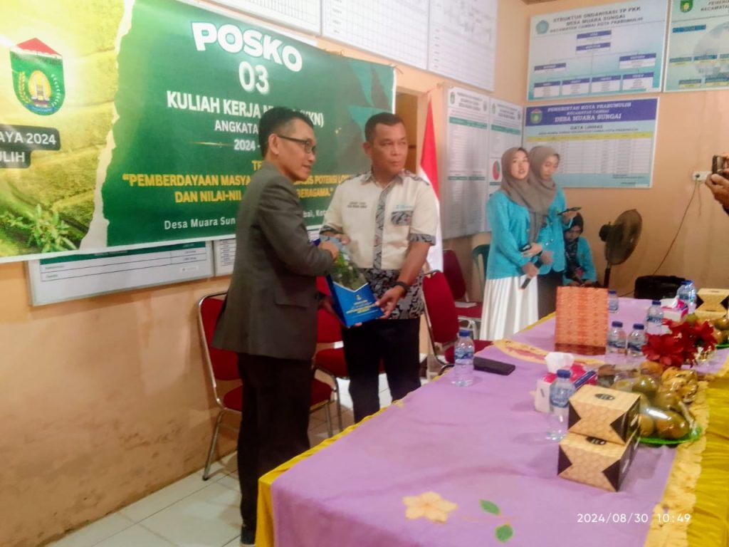 Jagatrayanews.id,Prabumulih-Sebanyak 24 mahasiswa-mahasiswi IAIQI Inderalaya angkatan 19 yang melaksanakan tugas KKN selama 30 hari di desa Muara Sungai Kec. Cambai Kota Prabumulih telah selesai, sehubungan dengan hal tersebut di gelar acara Pelepasan pada Jum’at (30/08/2024). Acara di langsungkan di Kantor Desa Muara Sungai Kec. Cambai. Hadir dalam kesempatan tersebut Kepala Desa Muara Sungai H. Lidar Yadi, Babinkamtibmas Kec. Cambai Aipda Bibi Andriansyah, Dosen Pembimbing Lapangan Suib Rizal, M.Pd.