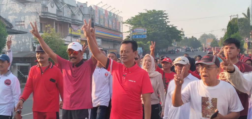 Jagatrayanews.id,Prabumulih-Ribuan masyarakat kota Prabumulih tumpah ruah ikut meramaikan acara Jalan Sehat dan Senam bersama Calon Walikota dan Calon Wakil Walikota Prabumulih periode 2024-2029 H. Andriansyah Fikri, SH dan Syamdakir Amrullah, ST. Acara yang di gelar pada Sabtu (28/09/2024) bertempat di Lapangan Volley Jalan Perwira Kel. Prabumulih Kec. Prabumulih Barat. Jalan sehat di mulai pada pukul 06.00 wib dan Start di Jalan Perwira dengan rute melintasi jalan Sudirman dan finish di Jalan Perwira Kel. Prabumulih.
