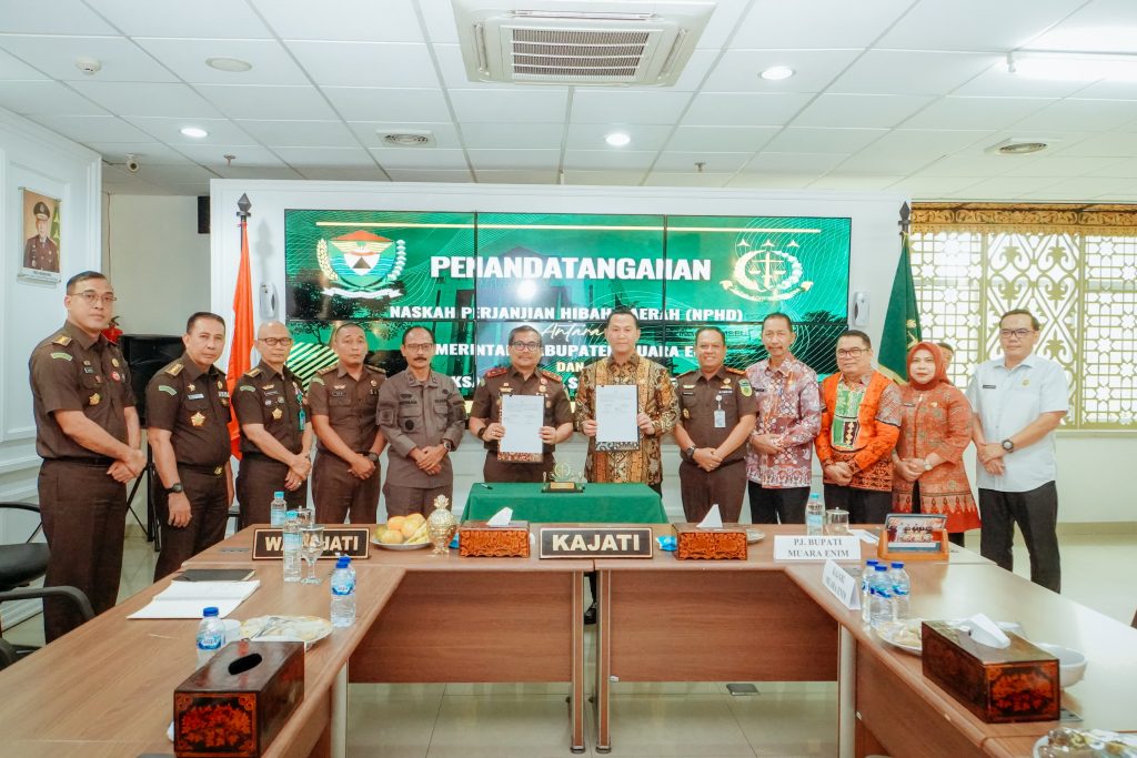 Hal ini diwujudkan dengan dilaksanakannya Penyerahan Naskah Perjanjian Hibah Daerah (NPHD) antara Pemkab. Muara Enim dengan Kejati Sumatera Selatan tentang Hibah Pembangunan gedung sport center, parkir serta mess eselon III yang ditandatangani langsung oleh Pj. Bupati Muara Enim, H. Henky Putrawan, S.Pt., M.Si., M.M., dan Kepala Kejati Sumsel, Dr. Yulianto, S.H., M.H., di Kantor Kejaksaan Tinggi Sumatera Selatan, Kamis (03/10).