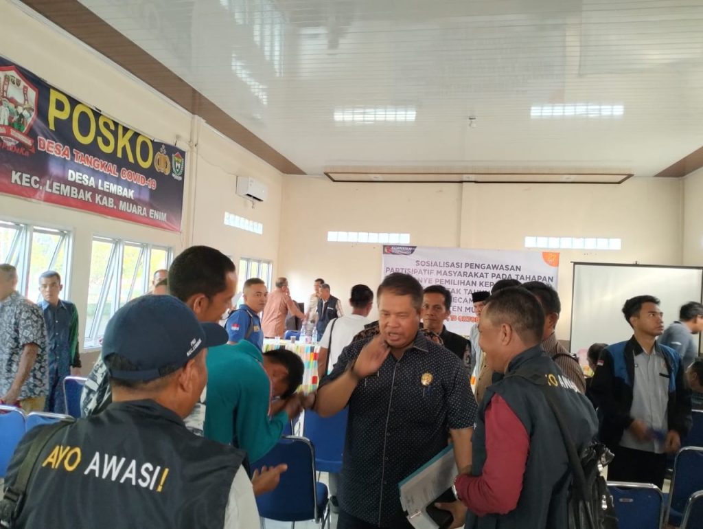 Jagatrayanews.id,Lembak-Mengingat pelaksanaan pemilihan Gubernur dan Wakil Gubernur serta Bupati dan Wakil Bupati tak akan lama lagi, Maka dari itu Bawaslu Kabupaten Muaraenim menggelar sosialisasi pengawasan partisipatif masyarakat pada tahapan kampanye Pemilukada serentak pada tahun 2024 ini..Acara tersebu di gelar di aula desa Lembak Kec. Lembak pada Senin (15/10/2024). Hadir dalam kesempatan ini Ketua Bawaslu Kab. Muaraenim Zainudin, S.P, M.Si, C. Med, Kepala Desa Lembak Jasmadi,SH, Kepala Desa Alai Ira Nanang dan Kepala Desa Alai Selatan Lukman Hakim, S.Sos, Perangkat Desa, Anggota BPD, Tokoh Masyarakat serta PKD. Dan juga menghadirkan nara sumber Andi Joni Fansyah,S.Pd,M.Si.