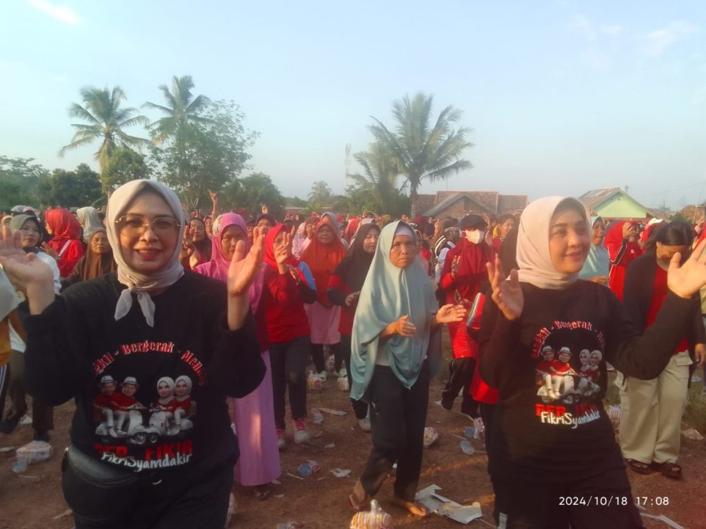 Kegembiraan Mewarnai Nyaris Ribuan Warga Karang Jaya Saat Hadir ditengah-tengah Mereka senam bersama Ibu Reni Indayani Fikri dan Ibu Wulan Syamdakir,Hingga Mereka berteriak Histeris,,Ibu,ibu,ibu Hingga akhirnya Salah Satu warga Memberanikan diri untuk poto Bersama Ibu Reni Fikri dan Ibu Wulan Syamdakir.