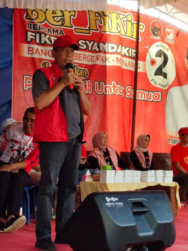 Kursono, mewakili warga Kel. Tebing Tanah Puteh menyampaikan pada yang hadir untuk meminta doa dan dukungan bagi Paslon Fikri-Syamdakir. Mari kita dukung dan kita pilih, tanpa dukungan warga Penimur Jaya, Cahaya Negeri paslon Ber_FiKir tidak ada apa-apanya, ” jelas Karsono.