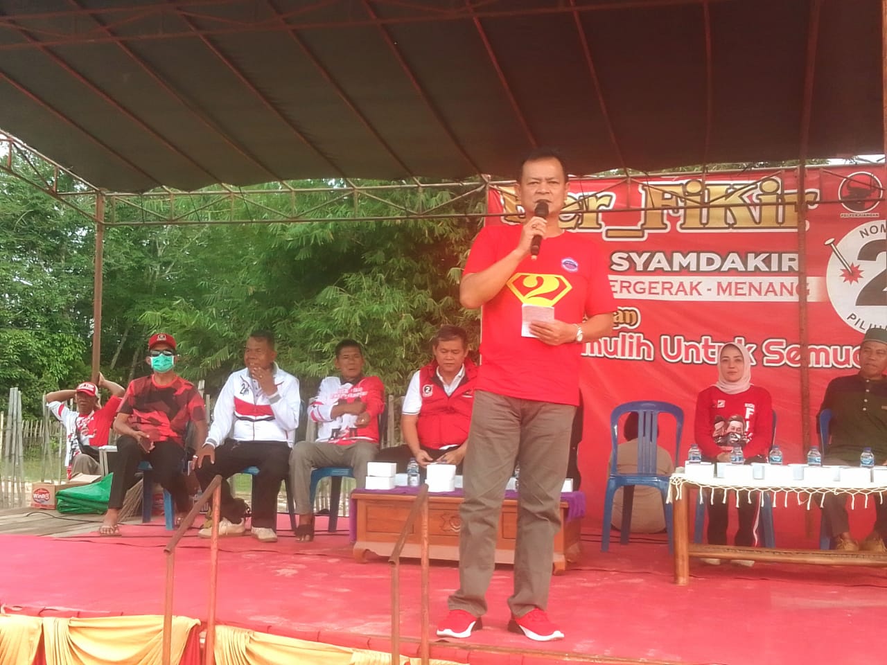 Syamdakir juga mengatakan, nomor 1 di dukung, nomor 3 di dukung tapi tetap mencoblos nomor 2,” jelasnya. Dirinya menyampaikan tolong doakan kami sehat, selamat terpilih, selamat di kantik dan selamat juga menjalankan tugas selama 5 tahun kedepan,” ungkapnya. (md/fj)