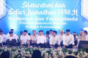 PRABUMULIH٫Jagatrayanews.id – Kota Prabumulih menjadi tuan rumah dalam acara silaturrahmi dan Safari Ramadhan 1446 H yang dihadiri oleh Gubernur Sumatera Selatan, H. Herman Deru, SH., MM didampingi Wakil Gubernur H. Cik Ujang bersama dengan Forum Komunikasi Pimpinan Daerah (Forkopimda) Sumatera Selatan.