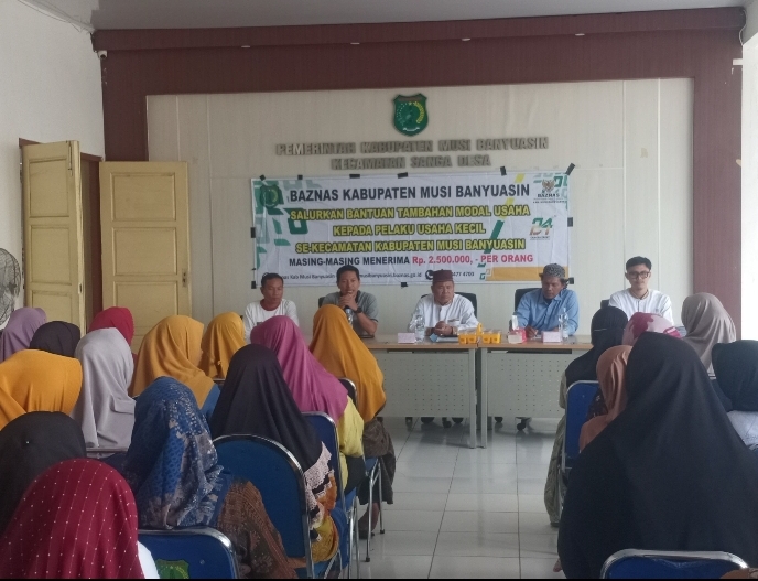 MUBA,Jagatrayanews.id – Badan Amil Zakat Nasional Kabupaten Musi Banyuasin (BAZNAS Muba). Melakukan penyaluran bantuan tambahan modal usaha bagi para pedagang kecil yang masih tergolong Mustahik (Miskin) di Kabupaten Muba.