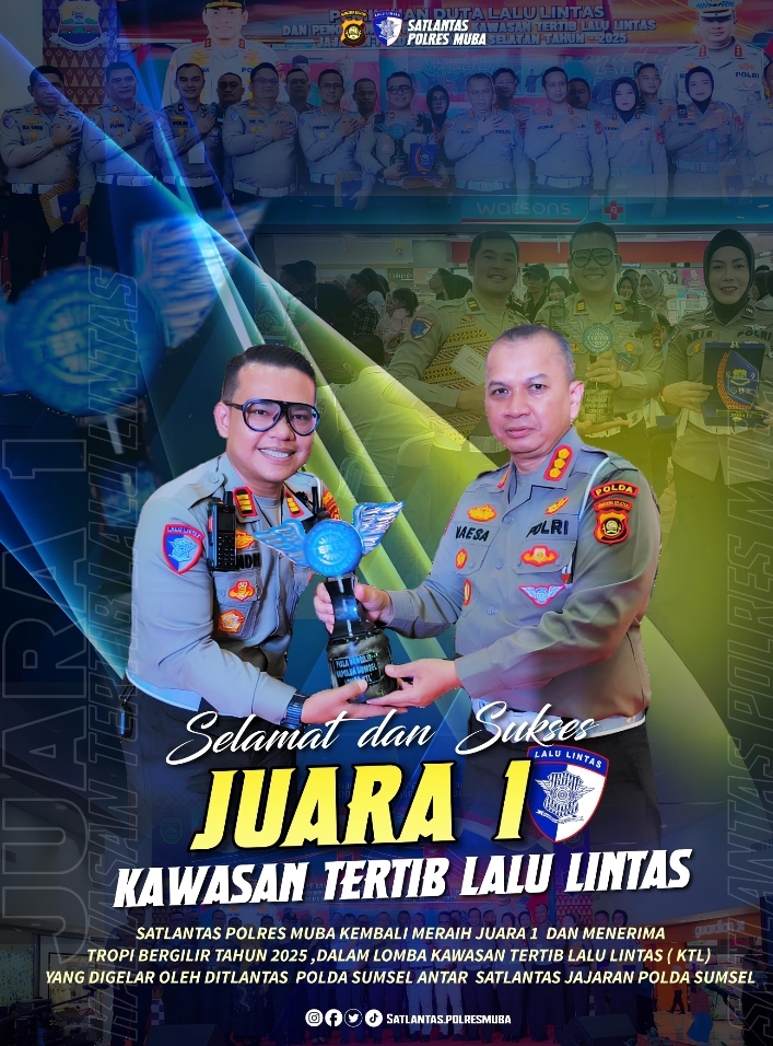 “Atas nama Pemkab dan masyarakat Muba, kami bangga dan mengucapkan selamat atas torehan luar biasa ini. Semoga prestasi ini menjadi pemacu semangat untuk terus berinovasi dan meningkatkan pelayanan di bidang lalu lintas,” ungkap Bupati Toha.