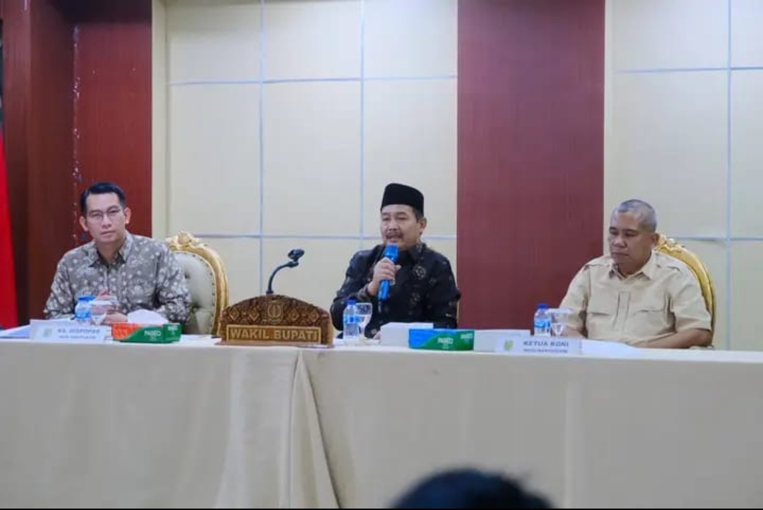 Rapat yang dipimpin langsung oleh Wakil Bupati Muba, Rohman mewakili Bupati H M Toha digelar di Auditorium Pemkab Muba, Jumat (10/5/2025) pagi, berlangsung dinamis dan penuh semangat kolaboratif. Hadir Kepala Dispopar Muba M. Fariz, Ketua KONI Muba Marjoni, jajaran OPD, Forkopimda, dan pemangku kepentingan terkait lainnya.
