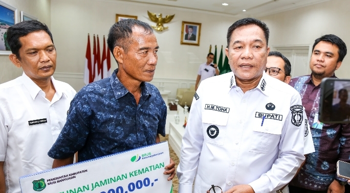 SEKAYU,Jagatrayanews.id – Bupati Kabupaten Musi Banyuasin H M Toha bersama BPJS Ketenagakerjaan Muba serahkan santunan jaminan kematian kepada ahli waris pekerja rentan program pake kelambu. Santunan kematian yang diberikan ini sebesar Rp 42 juta kepada ahli waris Almarhumah Nurhasana, Rabu (28/5/2025) bertempat di Kantor Bupati.