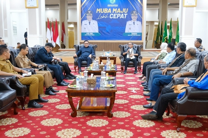 SEKAYU,Jagatrayanews.id – Bupati Musi Banyuasin (Muba) H M Toha SH menerima audiensi Ketua Umum Badan Pengurus Pusat Gabungan Pelaksana Konstruksi Nasional Indonesia (BPP Gapensi), Andi Rukman Nurdin Karumpa SE beserta jajaran, di Guest House Griya Bumi Serasan Sekate, Selasa (8/7/2025).