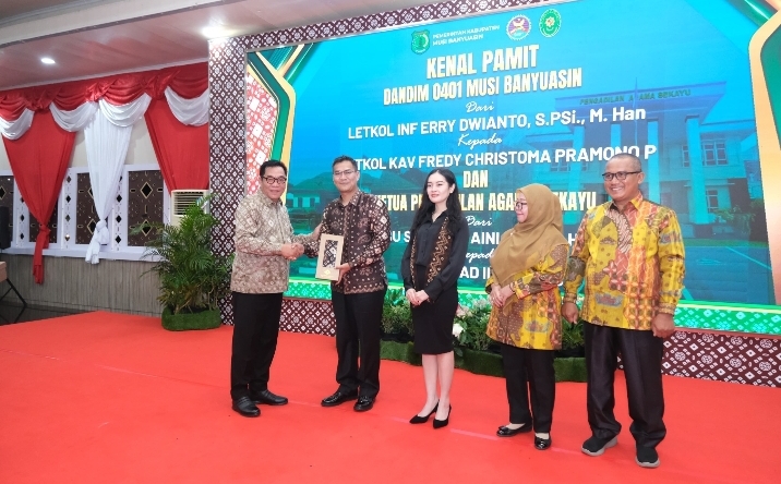 SEKAYU,Jagatrayanews.id – Pemerintah Kabupaten Musi Banyuasin menggelar acara pisah sambut untuk dua pejabat strategis, yakni Dandim 0401/Musi Banyuasin dan Ketua Pengadilan Agama Sekayu, di Pendopoan Griya Bumi Serasan Sekate, Sekayu, Jumat (11/7/2025) malam.